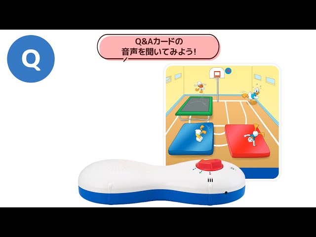 カードから流れてくる英語の質問を聞いて、答えの動きをしているキャラクターを探してみましょう。